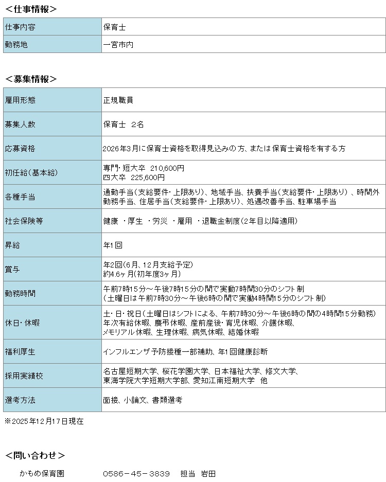 一宮市 かもめ 保育園